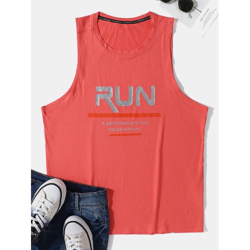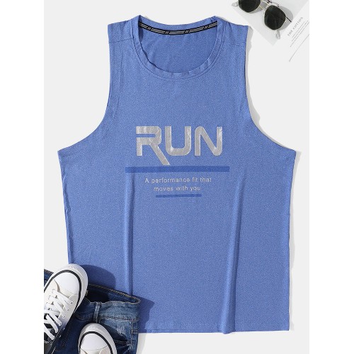 Men Reflective Letters Sleeveless Moisture Wicking Sporty Tank Tops
