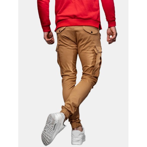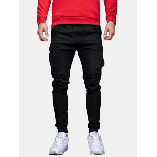 Mens Solid Color Drawstring Mid Waist Overalls Pocket Cargo Pants