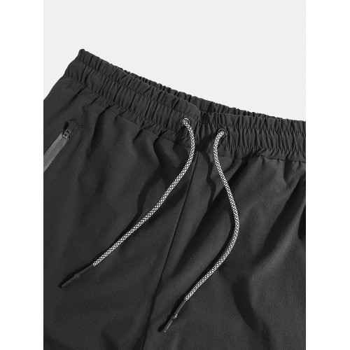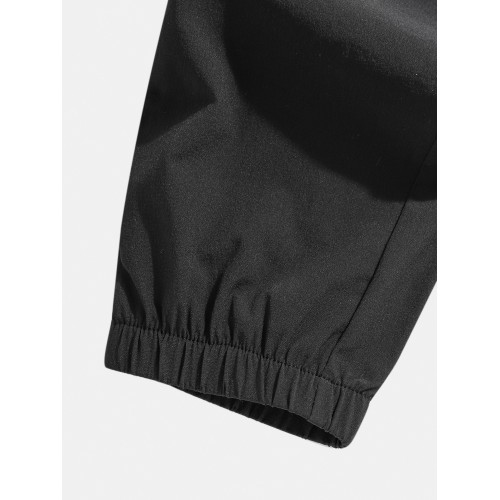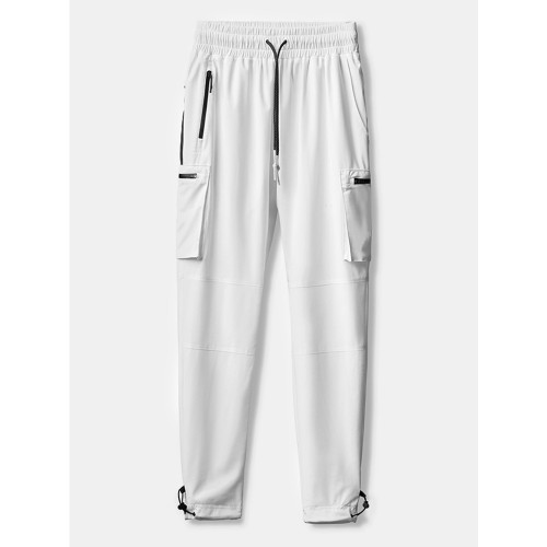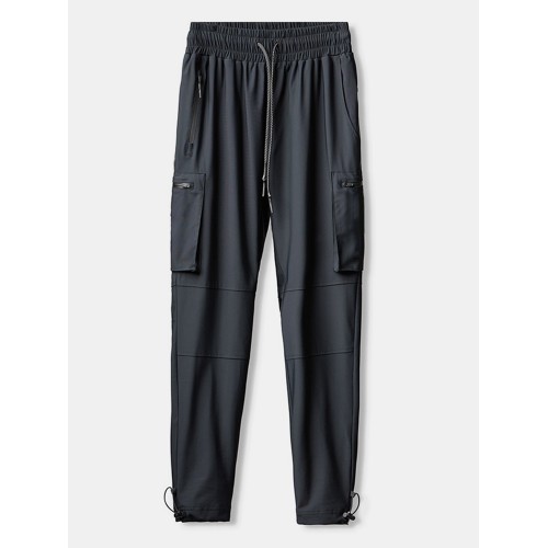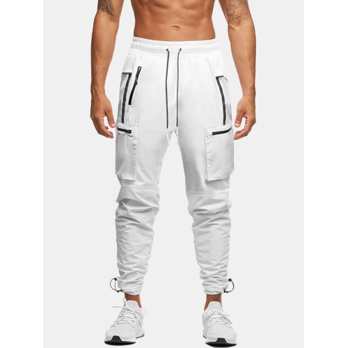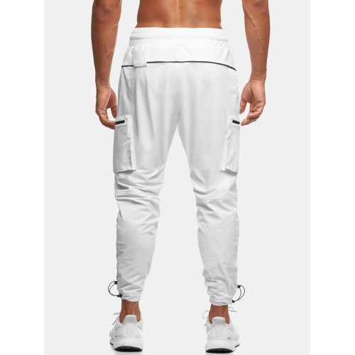 Mens Solid Color Multi Pocket Reflective Drawstring Sport Cargo Jogger Pants