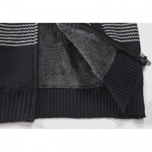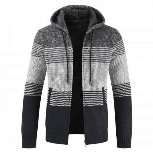Mens Thick Velvet Casual Thermal Knitting Cardigans Hooded Color Matching Sweaters