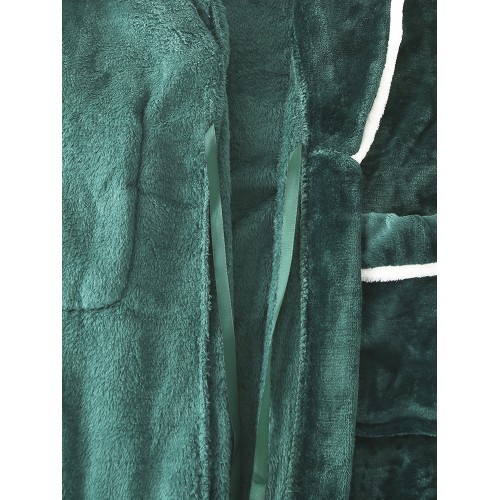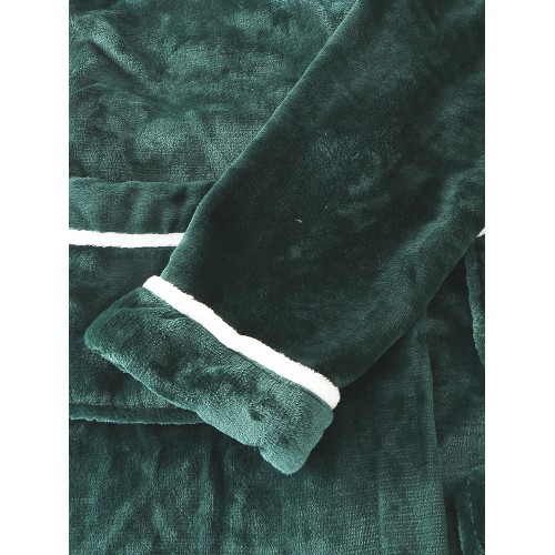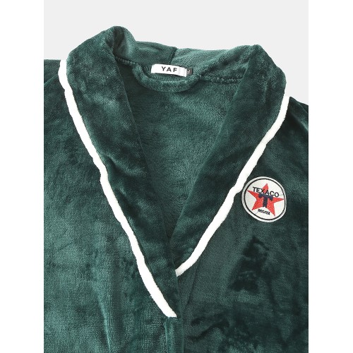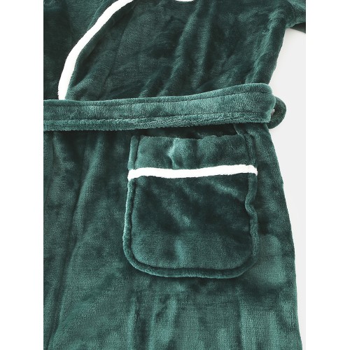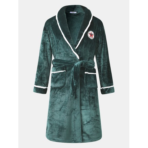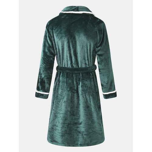 Mens Flannel Chest Patched Lapel Double Pocket Warm Comfy Robes With Belt