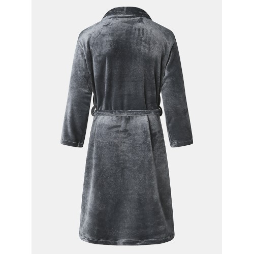 Mens Solid Color Flannel Thick Double Pocket Sashes Home Sleepwear Robes