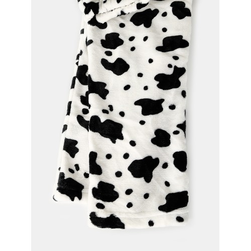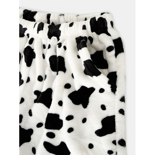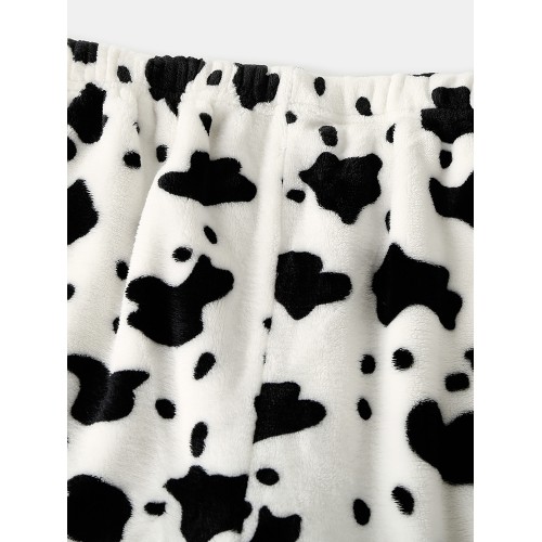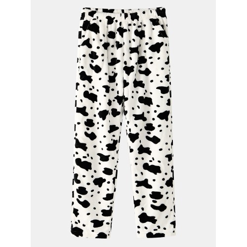 Mens Cows Pattern Thick Elastic Waist Plush Loose Pants Home Sleep Pants