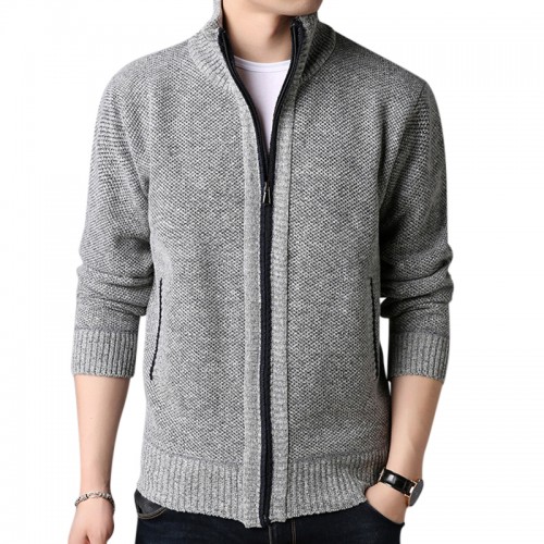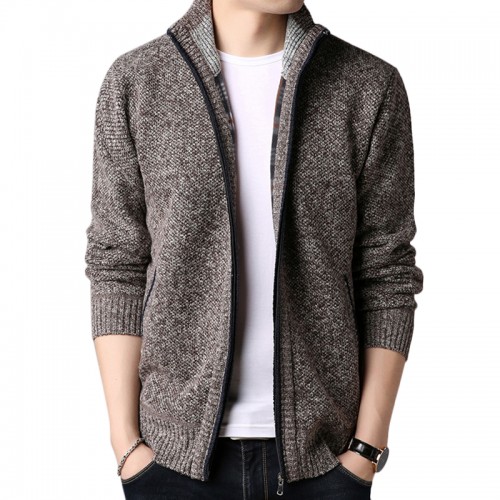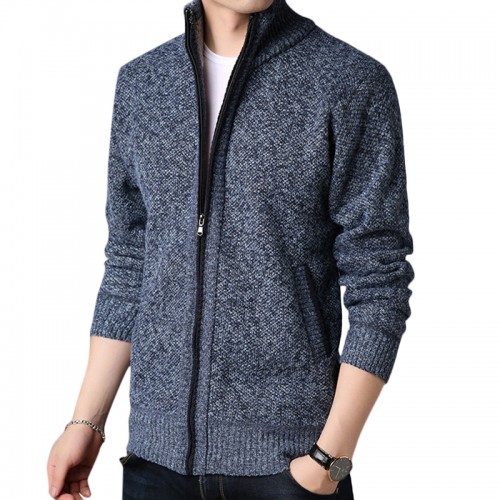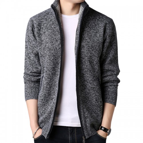 Mens Winter Casual Comfy Breathable Fleece Thicken Zipper Fly Long Sleeve Cardigans